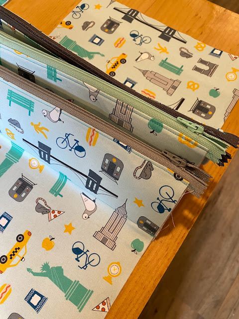I received some money for my birthday in February and purchased a kit to make a "Sew Together" bag at QuiltCon featuring fabrics with a New York City theme. I started sewing it at the retreat and hope to finish it this coming week.